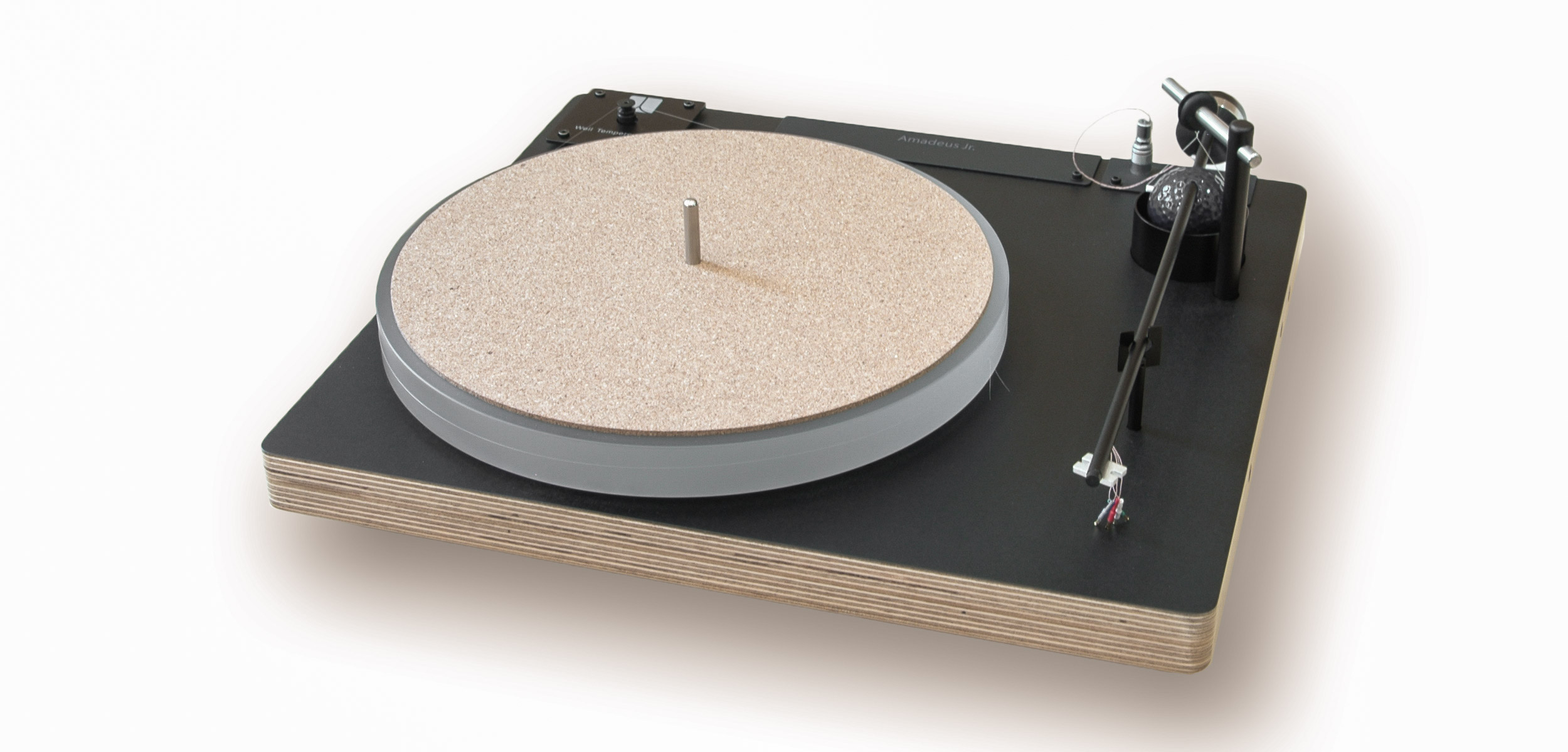 Amadeus Jr: Rebirth of a classic. The Amadeus was our first and original design that featured the now quite famous and innovative “golf ball” tone arm. The Amadeus Jr. now features a multilayer plywood plinth finished in Black and can be ordered with either our famous 10.5" golf ball tonearm or our recently developed Symmetrex tonearm.