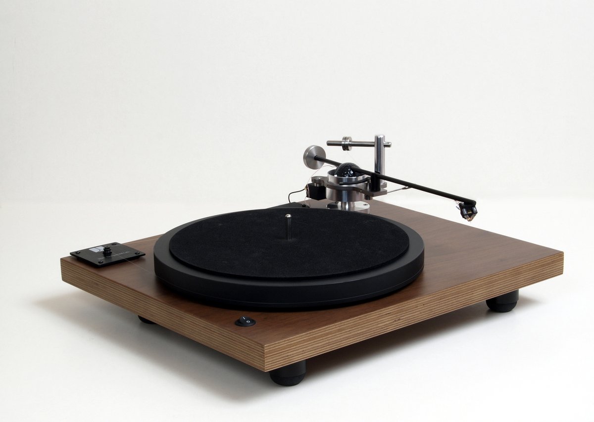A multi-layer “Baltic” plywood plinth finished with a walnut veneer top surface. Baltic plywood is dimensionally stable and has a very natural resonance that also results in a natural “EQ” which is excellent for our purpose.